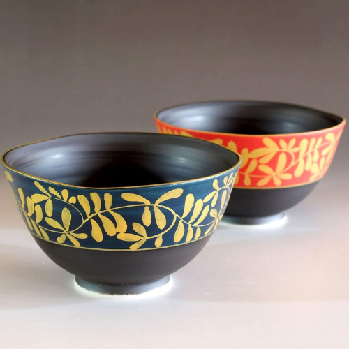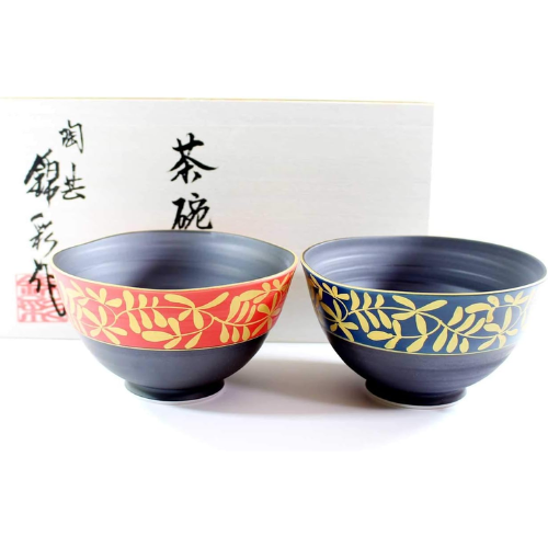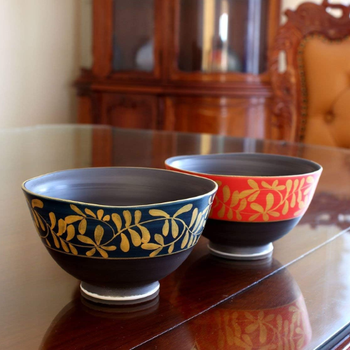Tijela de Arroz de Cerâmica Arita com Padrão de Arabescos Dourados e Bordas Onduladas (Conjunto 2 unidades)